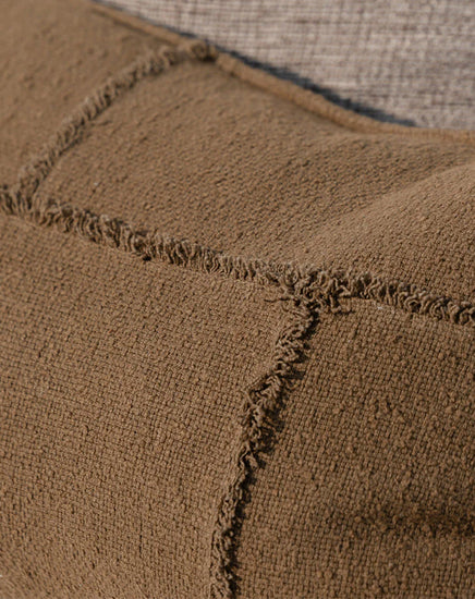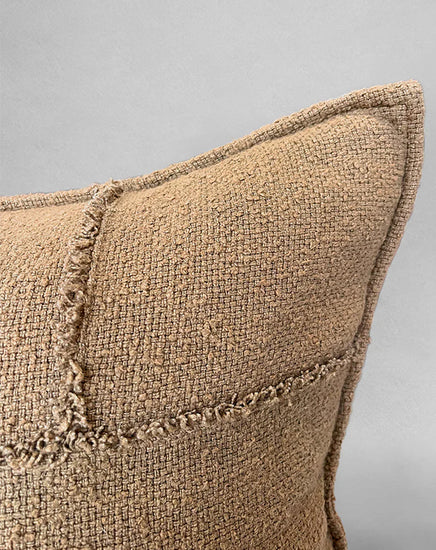 A richly textured cushion designed to ground and soften your space. The Aerial Cushion is woven from tactile cotton bouclé with raw-edged seams and sculptural geometric panelling for a handcrafted, dimensional feel.