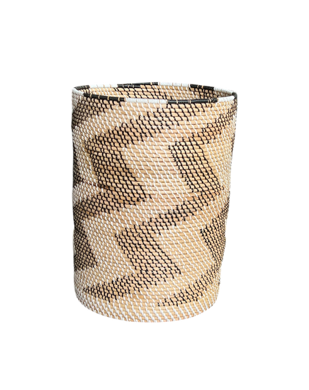 Features a black and white zigsag pattern created from sythentic rattan woven around natural rattan.